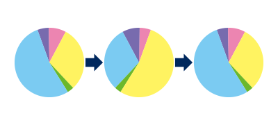 相場の変動などにより変化した資産配分の配分を定期的に調整(メンテナンス)することで、当初運用方針の資産運用を継続します。